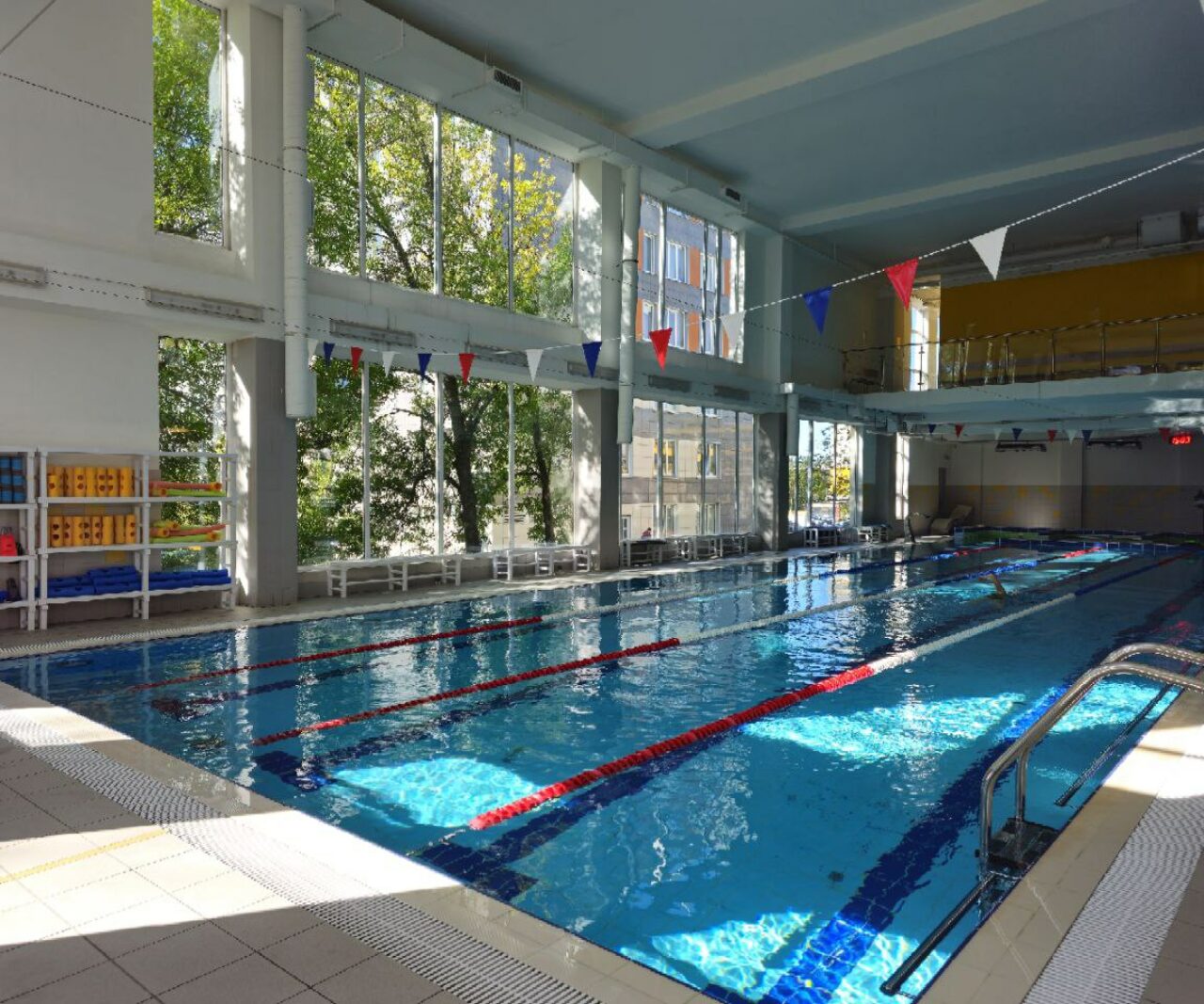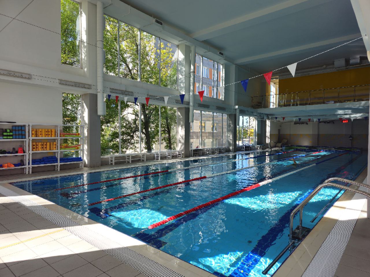 В нашем бассейне можно расслабленно плавать после рабочего дня, обучаться правильной технике под присмотром опытных тренеров или наслаждаться групповыми занятиями: от аквааэробики и суставной гимнастики до группового обучения плаванию.